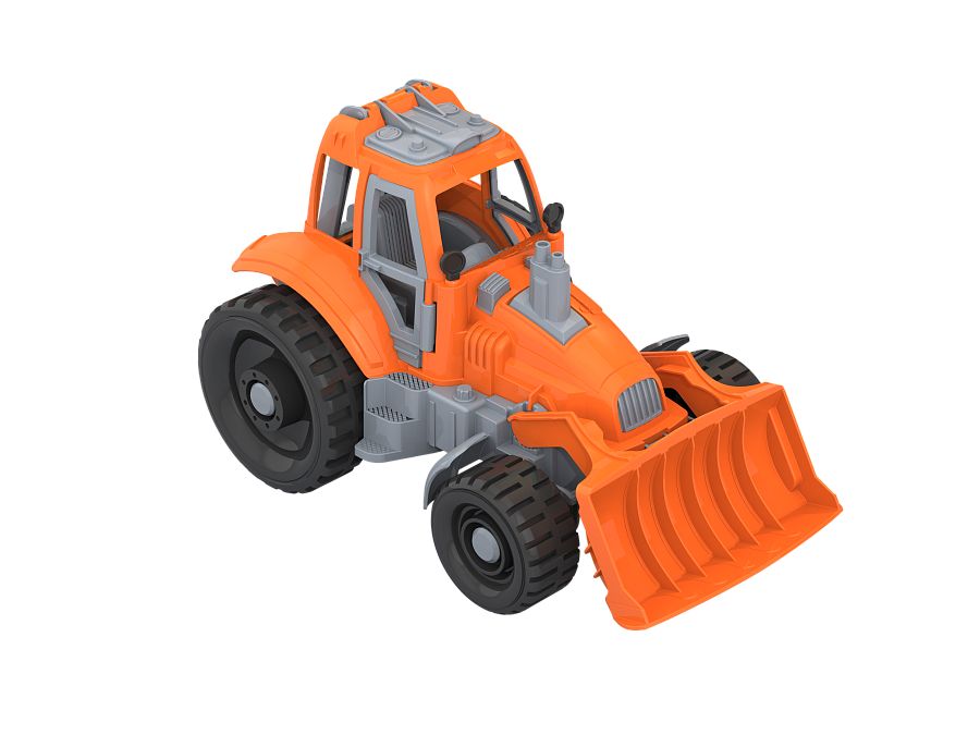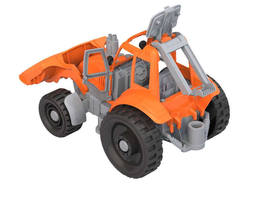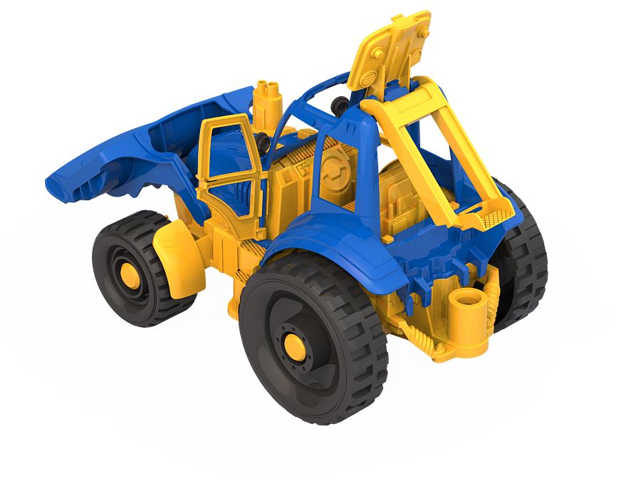 Многофункциональная машинка для игры в песочнице и дома оснащена подвижным грейдером, который с легкостью расчистит площадку для строительства.