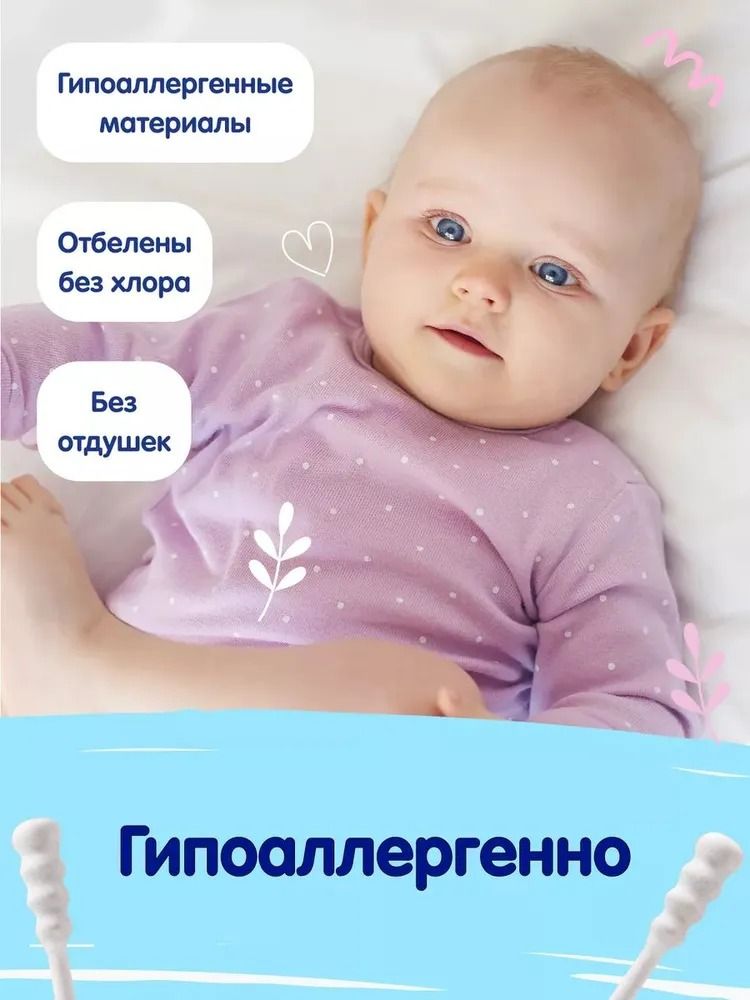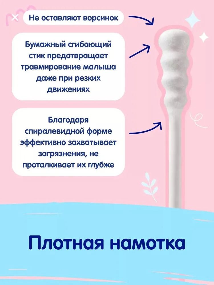 Детские ватные палочки MEPSI спиралевидные специально созданы для гигиены малыша с первых дней жизни.