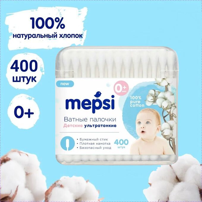Читать все статьиПалочки ватные детские MEPSI, ультратонкие, 400 шт
