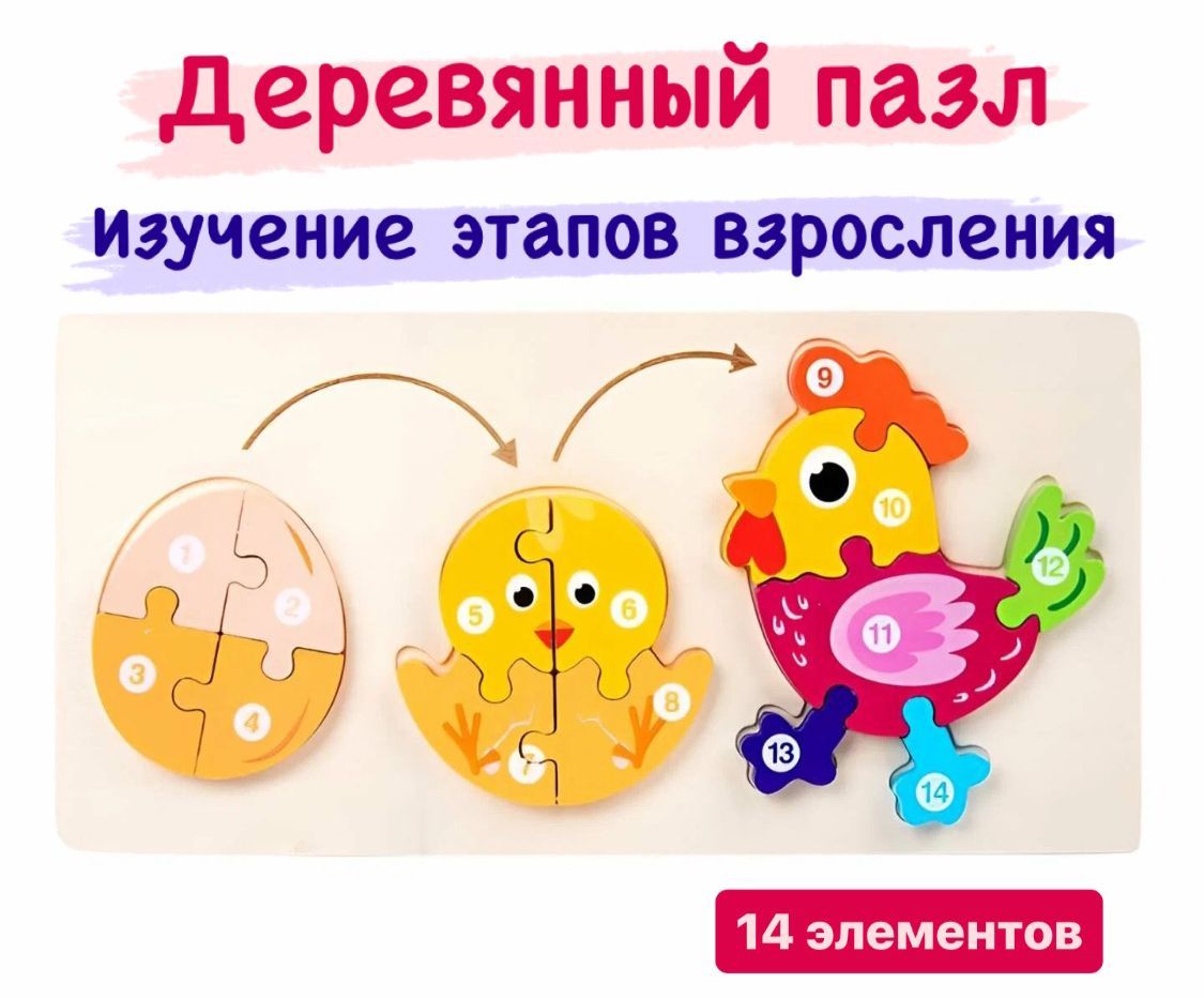 Читать все статьиПазл Петушок - изучаем этапы взросления, дерево, 0+