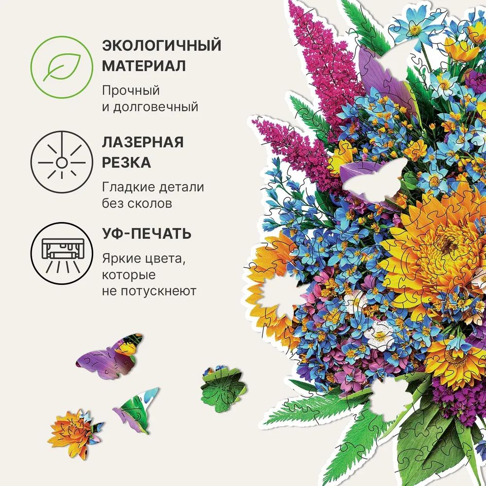 Читать все статьиПазлы деревянные UNIDRAGON FLORA Цветущий букет 100 pcs