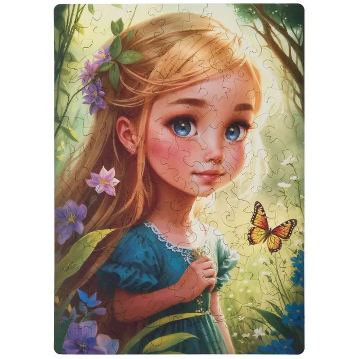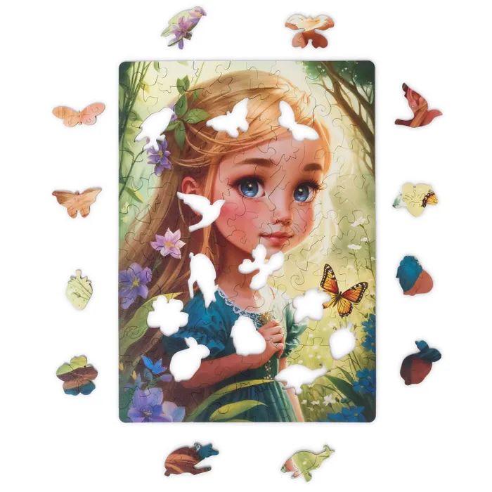 Этот пазл — сказка о маленькой очаровательной принцессе в окружении волшебного леса. В ее волосах расцветают нежные цветы, а вокруг порхают легкие бабочки. Мягкий солнечный свет окутывает этот лесной уголок, приглашая в путешествие по сказочному миру. Фигурные детали в форме растений, птиц и зверей станут вашими проводниками в этом летнем приключении.