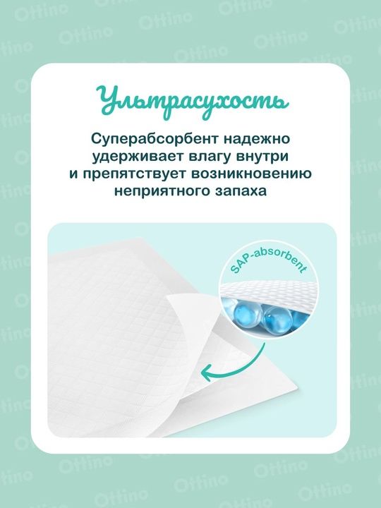 Читать все статьиПеленки детские одноразовые впитывающие OTTINO, 60*60 10 шт