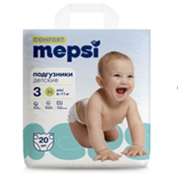 Подгузники Mepsi обладают нежной текстурой и мягкими липучками, которые обеспечивают комфортную и безопасную посадку на теле малыша.