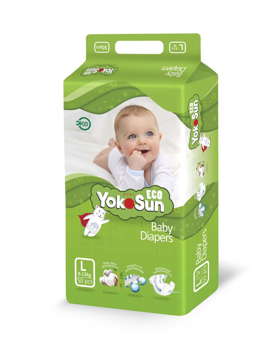 Читать все статьиПодгузники детскиеYokoSun Eco, L (9-13 кг), 50 шт.