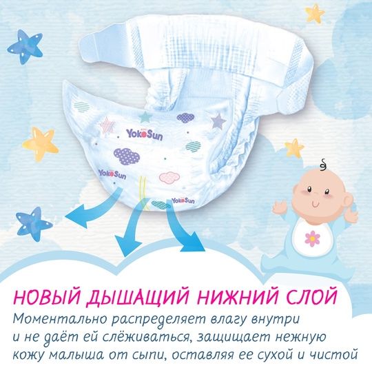 Читать все статьиПодгузники детскиеYokoSun, NB (2-5 кг), 34 шт.
