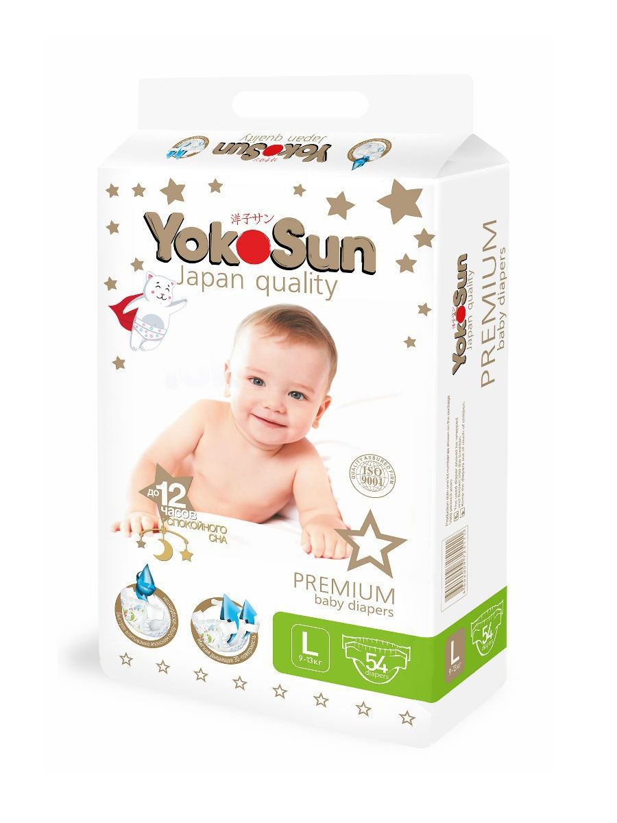 Читать все статьиПодгузники детскиеYokoSun Premium, L (9-13кг), 54 шт.