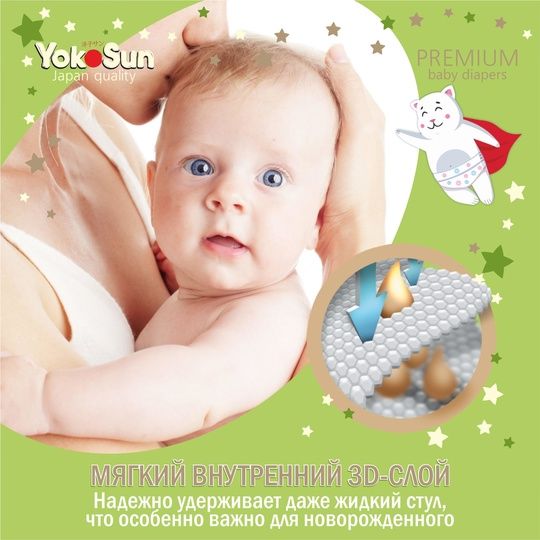 Подгузники YokoSun серии Premium – это новая линейка полюбившихся многим родителям подгузников YokoSun. Они отвечают всем требованиям современных мам и дарят до 12 часов спокойного сна.
