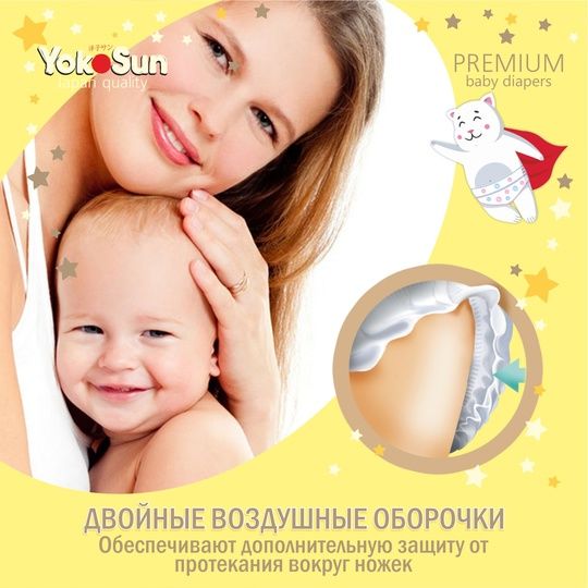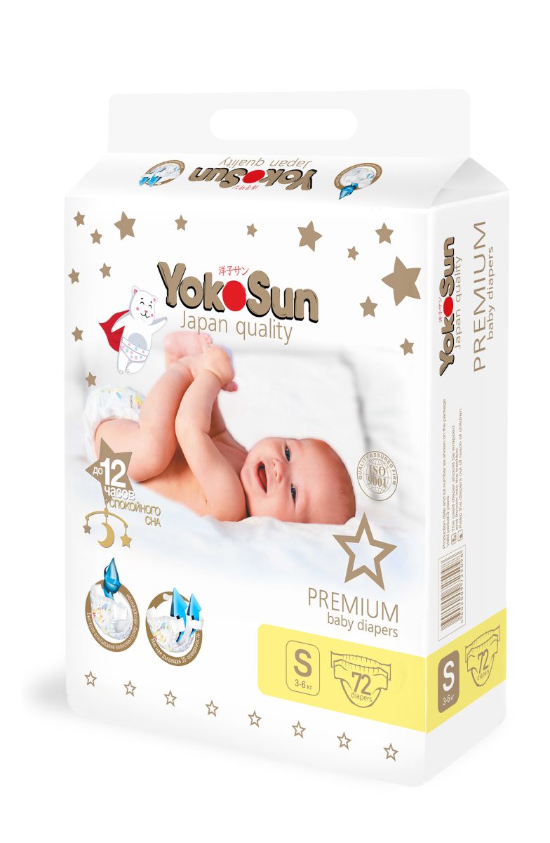 Читать все статьиПодгузники детскиеYokoSun Premium, S (3-6кг), 72 шт.