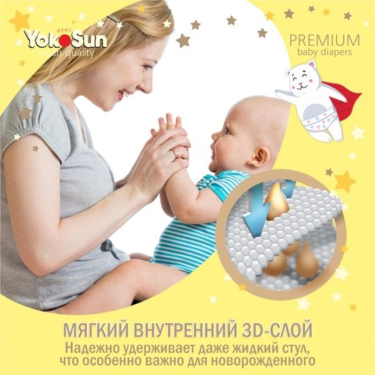 Подгузники YokoSun серии Premium – это новая линейка полюбившихся многим родителям подгузников YokoSun. Они отвечают всем требованиям современных мам и дарят до 12 часов спокойного сна.