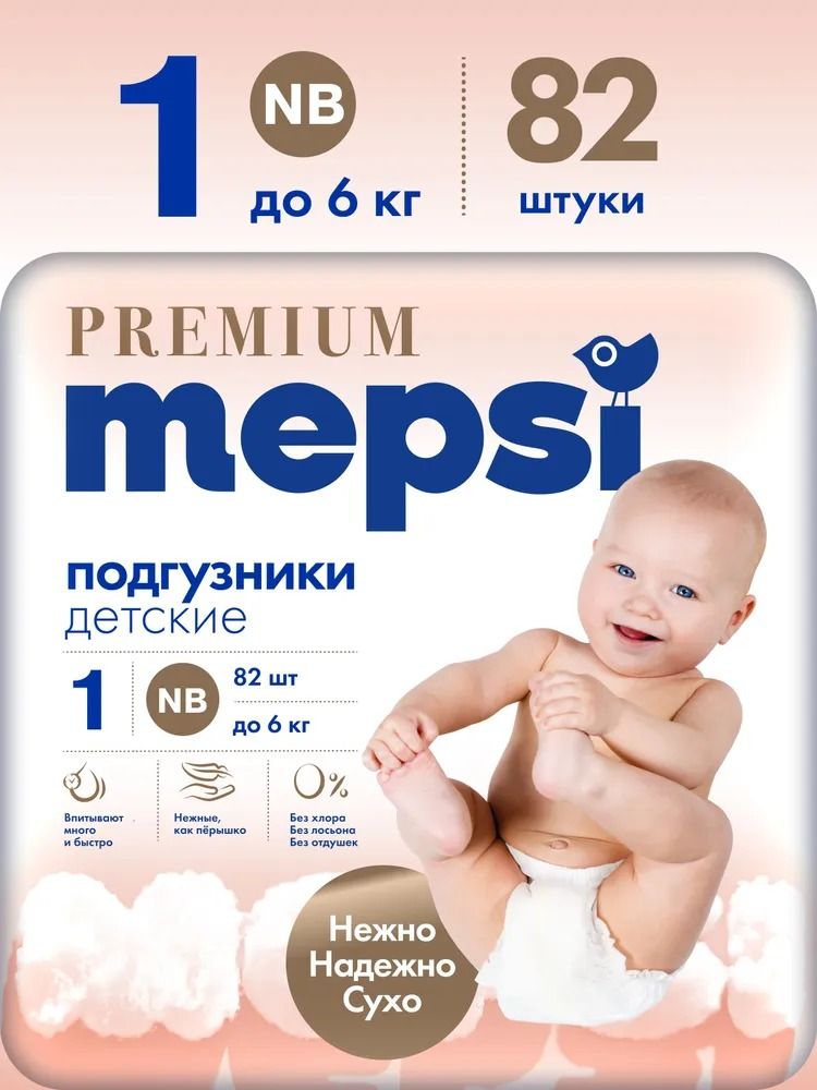 Читать все статьиПодгузники детские MEPSI Premium, NB (до 6кг), 82 шт