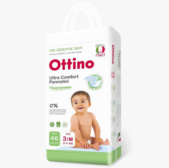Читать все статьиПодгузники детские Ottino, M (6-11 кг), 46 шт
