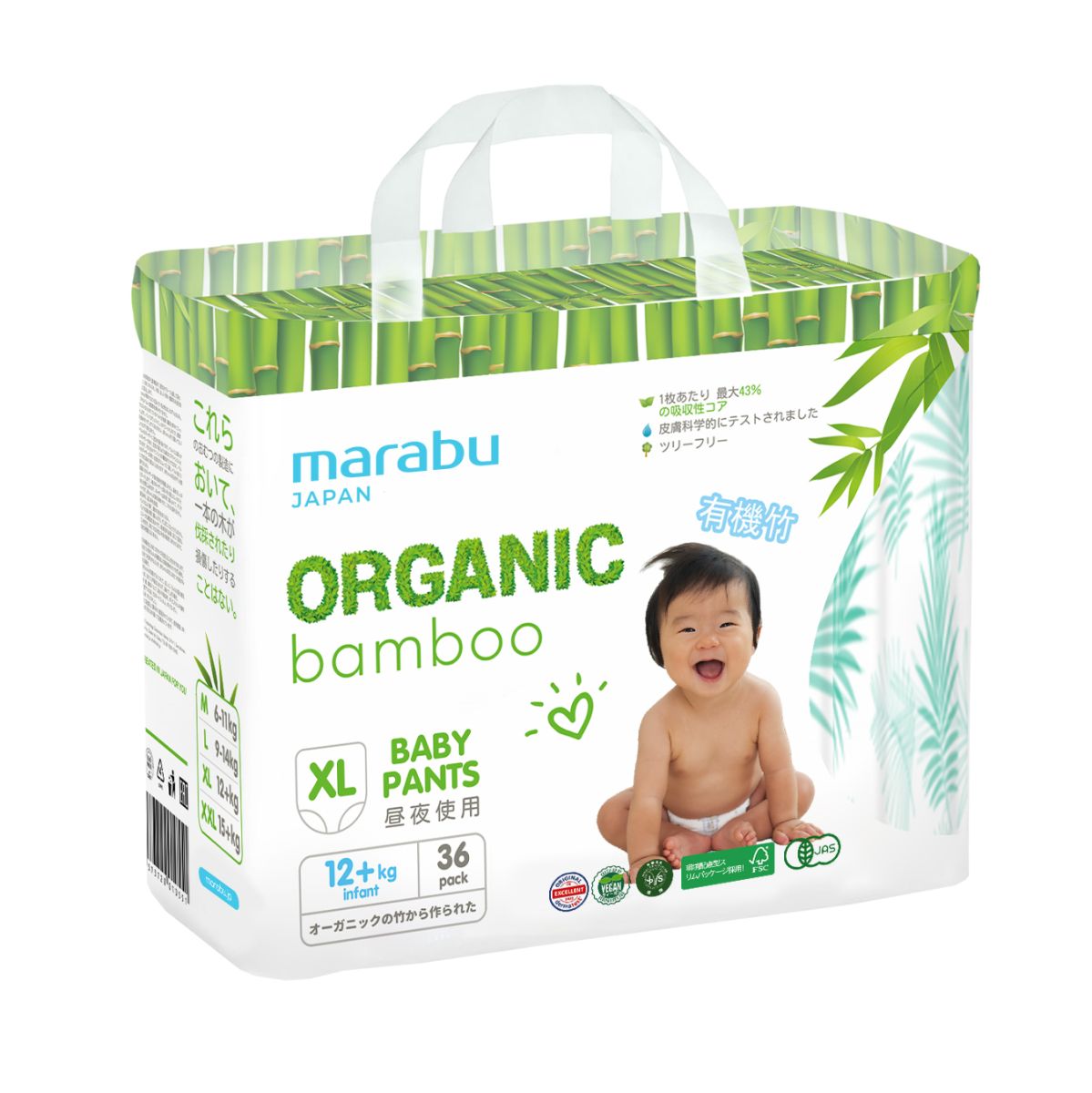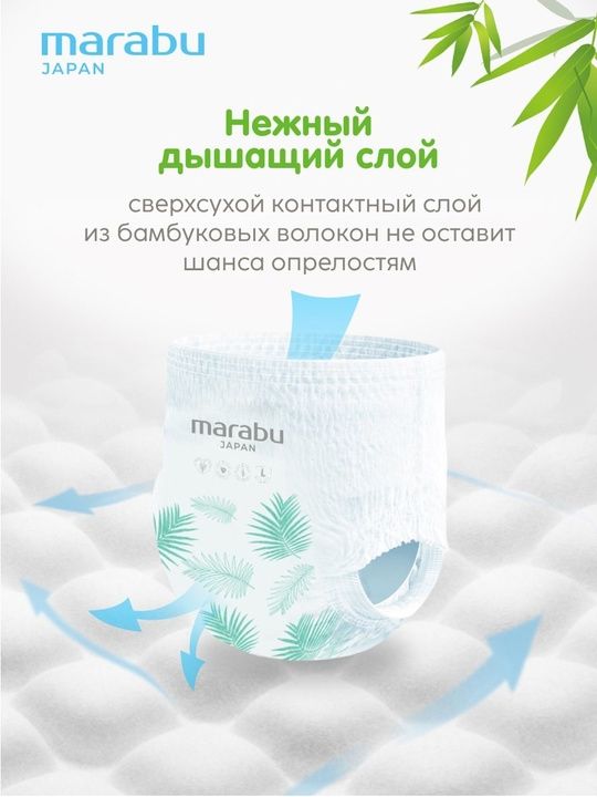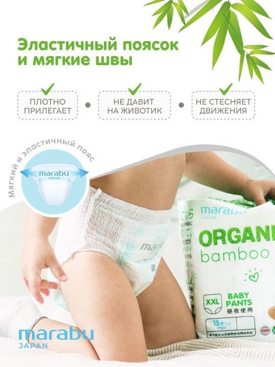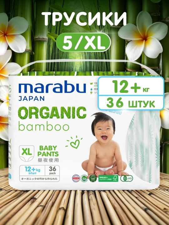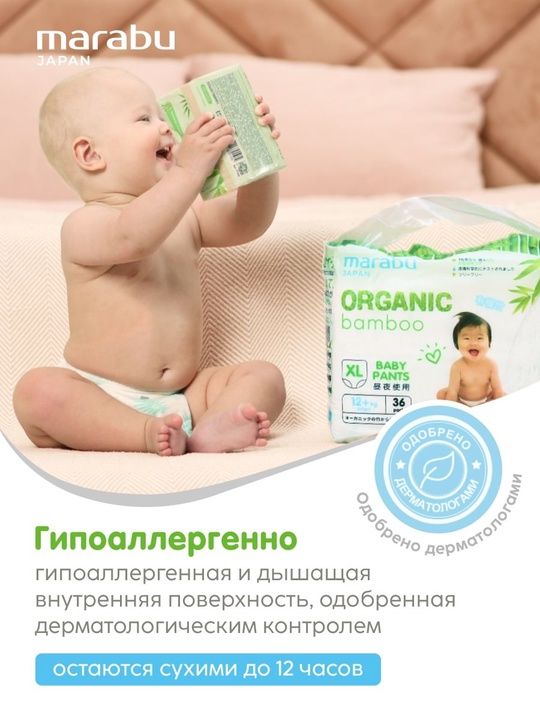 Читать все статьиПодгузники-трусики Organic Bamboo MARABU, XL (12+ кг), 36 шт
