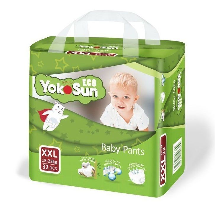 Читать все статьиПодгузники-трусики детскиеYokoSun Eco, XXL (15-23 кг), 32 шт.