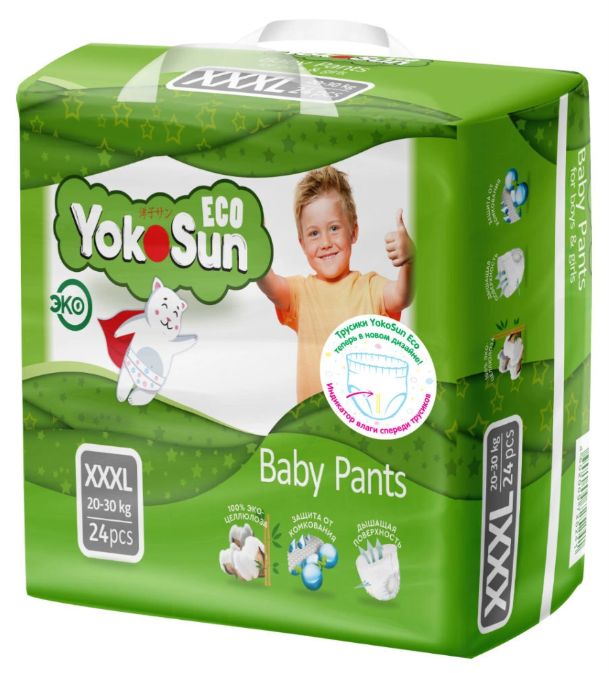 Читать все статьиПодгузники-трусики детскиеYokoSun Eco, XXXL (20-30 кг), 24 шт.
