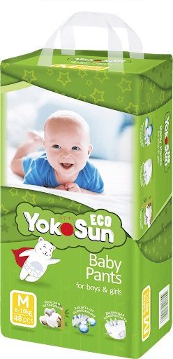 Читать все статьиПодгузники-трусики детскиеYokoSun Eco, М (6-10 кг), 48 шт.