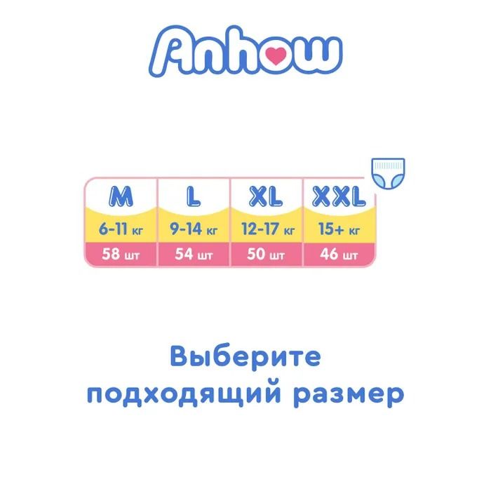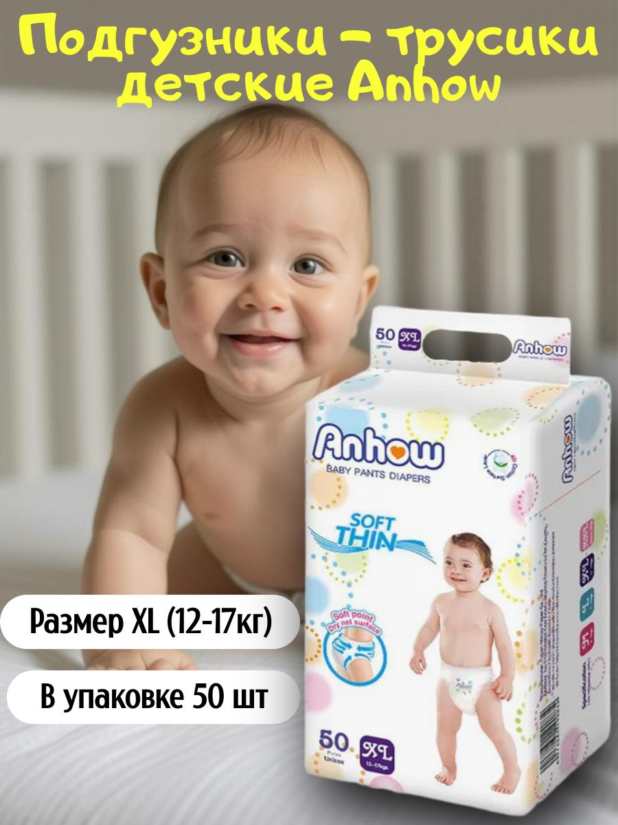 Читать все статьиПодгузники-трусики детские Anhow, XL (12-17кг), 50 шт