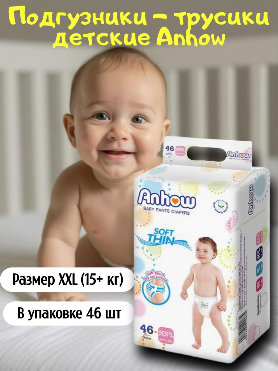 Читать все статьиПодгузники-трусики детские Anhow, XXL (15+ кг), 46 шт