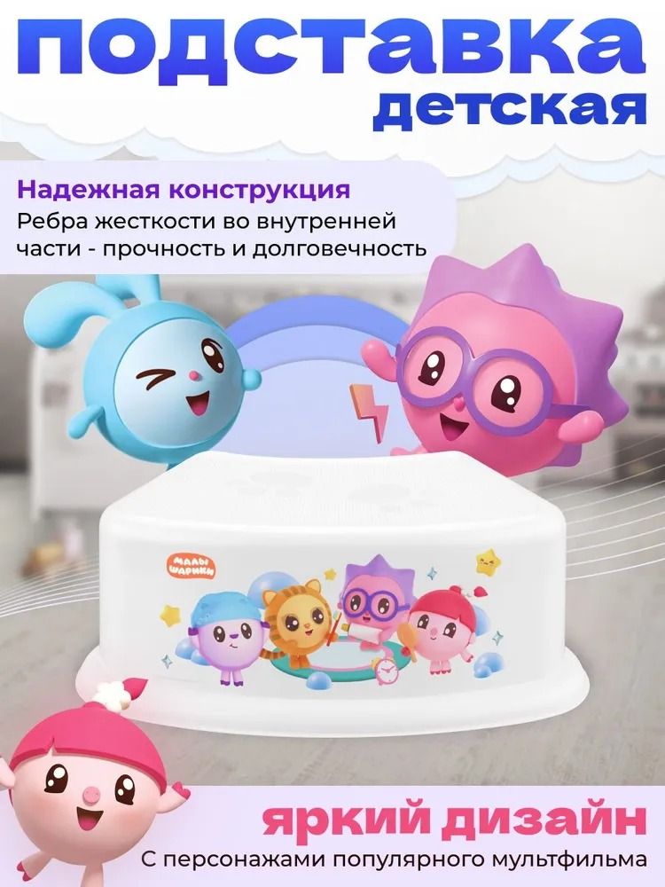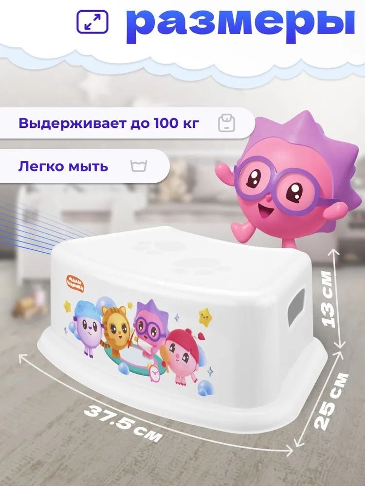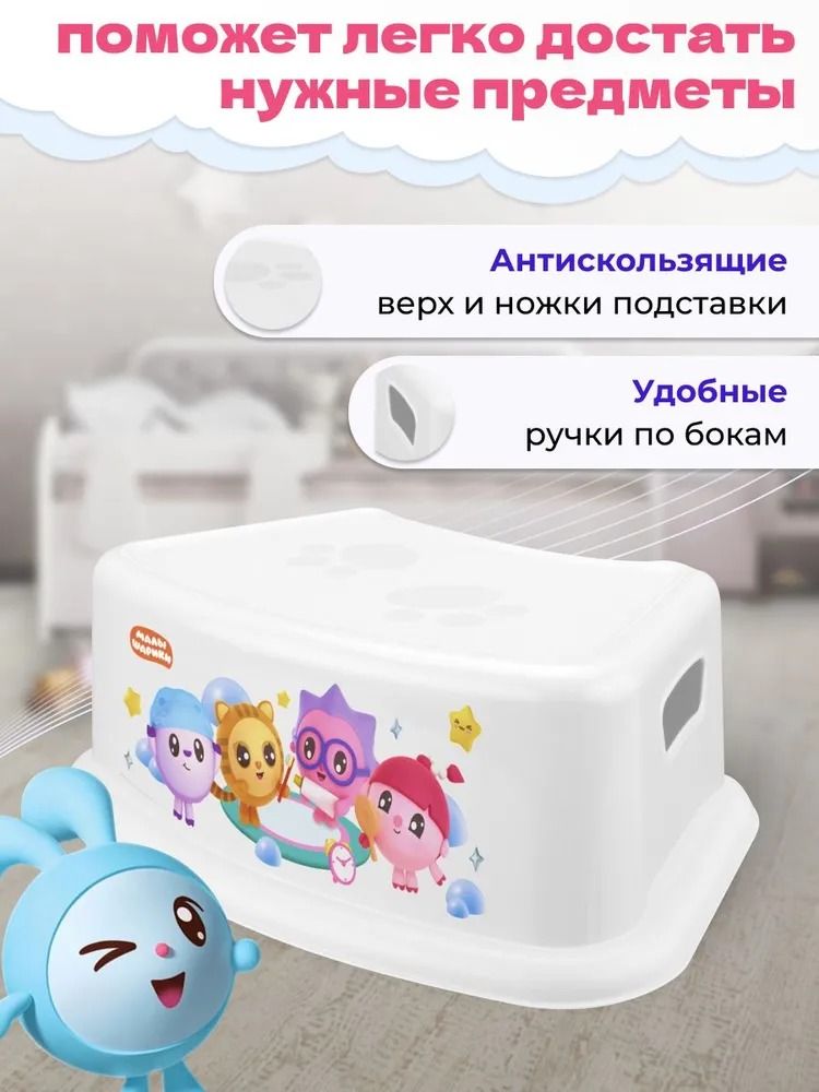 Прочная, но легкая детская подставка из коллекции "Малышарики" — многофункциональный помощник для ребенка. Поможет дотянуться до раковины, унитаза, а также достать любимую игрушку с полки. Лёгкую подставку малыш сможет самостоятельно передвигать с места на место или использовать как стульчик. Удобные ручки с двух сторон помогают с удобством переносить подставку. Рифленая (антискользящая) поверхность обеспечивает безопасность при использовании. Рёбра жёсткости на внутренней части подставки делают её ещё надёжнее и долговечнее.