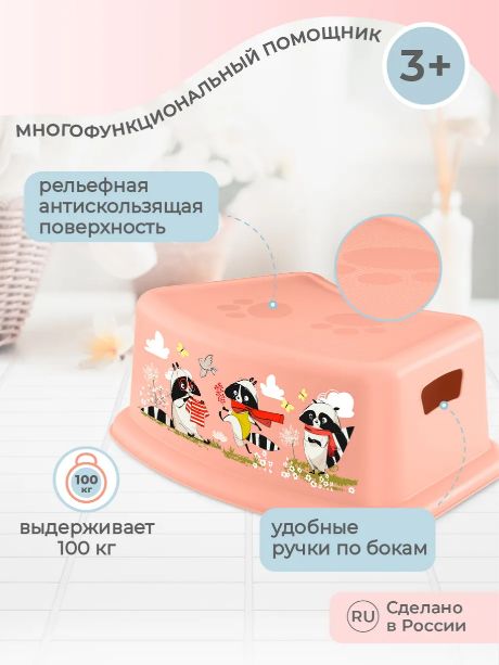 Прочная, но легкая детская подставка «Пластишка» — многофункциональный помощник для ребенка. Поможет дотянуться до раковины, унитаза, а также достать любимую игрушку с полки. Лёгкую подставку малыш сможет самостоятельно передвигать с места на место или использовать как стульчик. Удобные ручки с двух сторон помогают с удобством переносить подставку. Рифленая (антискользящая) поверхность обеспечивает безопасность при использовании. Рёбра жёсткости на внутренней части подставки делают её ещё надёжнее и долговечнее.