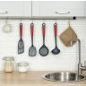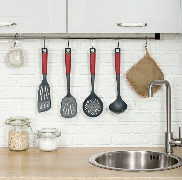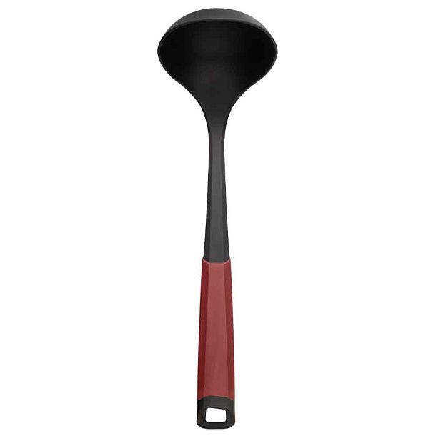 Эргономичная ручка, благодаря вставки из эластомера и матовой поверхности, не скользит в руке и приятна тактильно. Гибкая петля в верхней части позволяет хранить половник в подвешенном состоянии.