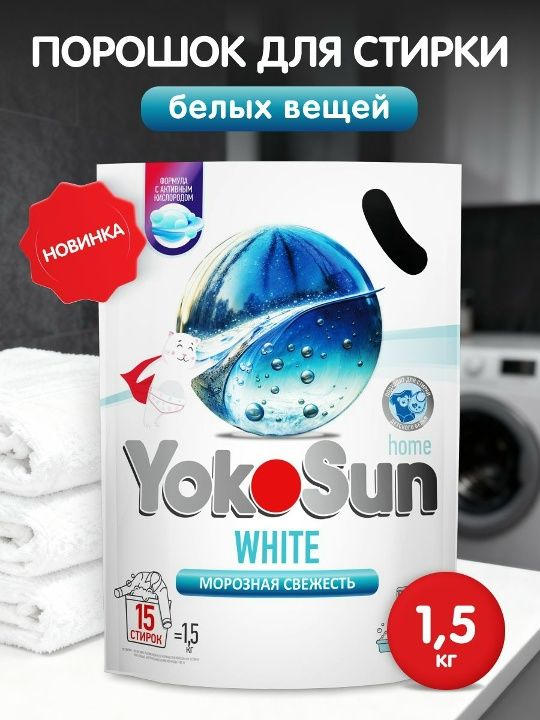 Читать все статьиПорошок для стирки белых вещей YokoSun, 1,5 кг