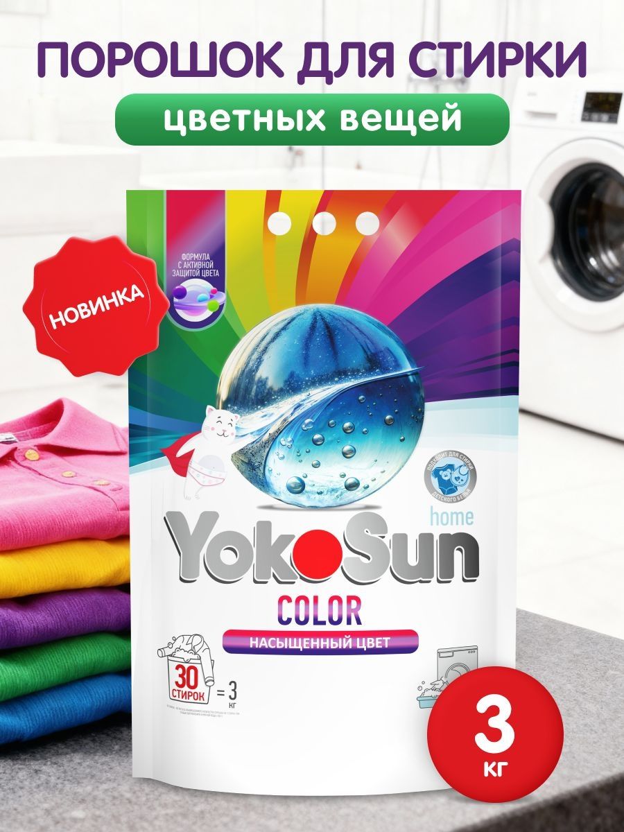 Читать все статьиПорошок для стирки цветных вещей YokoSun, 3 кг