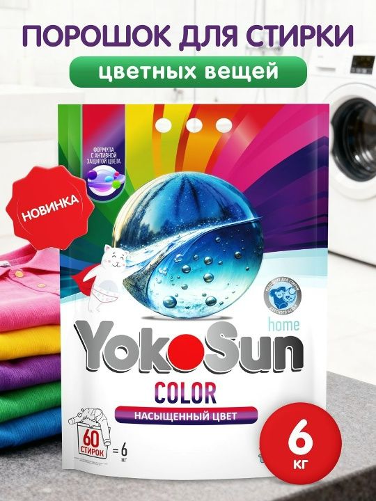 Читать все статьиПорошок для стирки цветных вещей YokoSun, 6 кг.