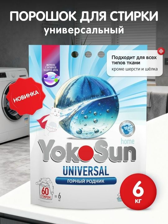 Читать все статьиПорошок для стирки универсальный YokoSun, 6 кг