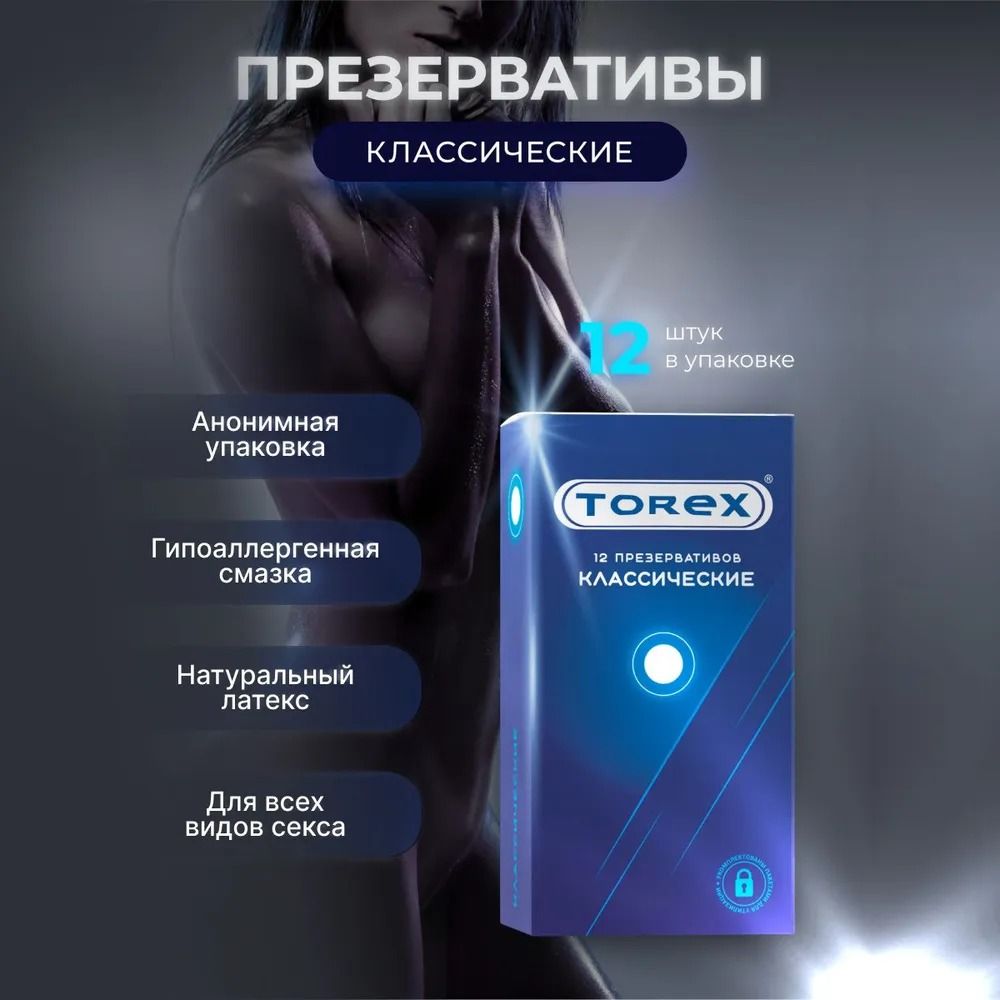 РЕЗЕРВАТИВЫ TOREX КЛАССИЧЕСКИЕ надёжно защищают от заболеваний, передающихся половым путём, обладают высокой эластичностью и оптимальным размером 190х55 мм. Укомплектованы непрозрачными пакетами для утилизации после использования.Презервативы подходят для любого вида секса: вагинального, анального, орального, с применением интимных игрушек.Размер презерватива обеспечивает комфортное надевание и использование. Презервативы Torex производятся из натурального латекса на современном автоматизированном оборудовании и проходят многоступенчатый контроль качества (в том числе электронную проверку герметичности).Каждый презерватив обильно смазан гипоаллергенным силиконом для лёгкого и приятного проникновения. Индивидуальные блистеры имеют зубчики, обеспечивающие удобное открывание без использования острых предметов. Презервативы комплектуются непрозрачными пакетами для утилизации со скотч-полосой. Это позволяет сохранить тайну отношений и избежать лишних вопросов от окружающих. Презервативы Torex производятся в экологичной упаковке из картона без использования полимерной слюды. Упаковка заклеена и имеет надёжный контроль первого вскрытия.