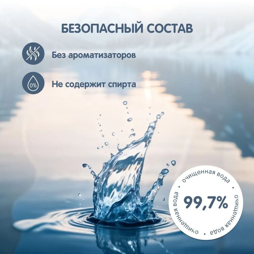 Материал салфеток – 100% вискозное полотно, произведенное из натурального сырья. Пластиковый клапан надежно защищает салфетки от высыхания.