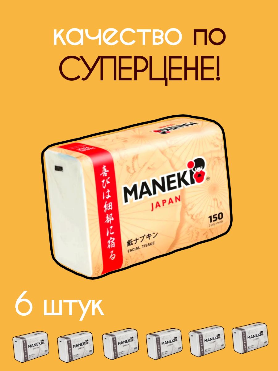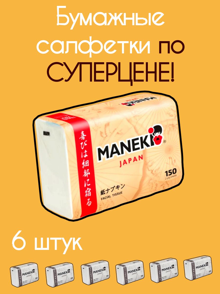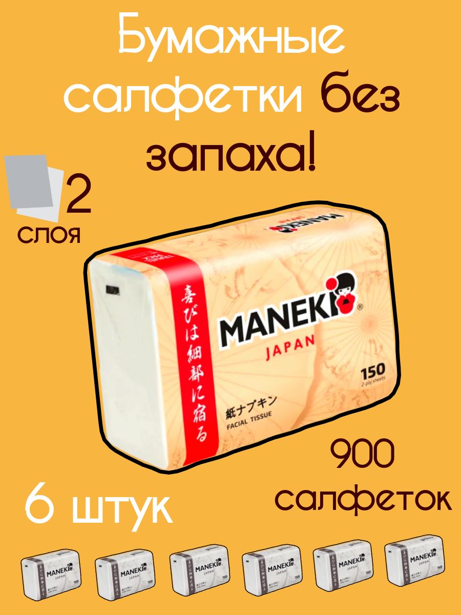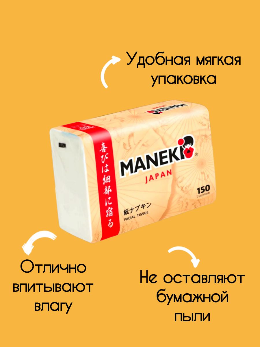 Читать все статьиСалфетки бумажные «Maneki» KABI, 2 слоя, белые, 150 шт