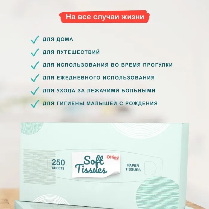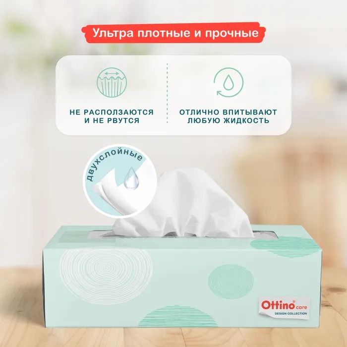 Салфетки в коробке 250 штук OTTINO Care, новинка итальянского производителя ОТТИНО. В одной коробке 250 штук. Размер салфетки – 210х200 мм. Не раздражают кожу, при этом прочны и долговечны. Продукт гипоаллергенен и разработан совместно с дерматологами. Салфетки засчет инновационной структуры тиснения выделяются своей мягкостью.
