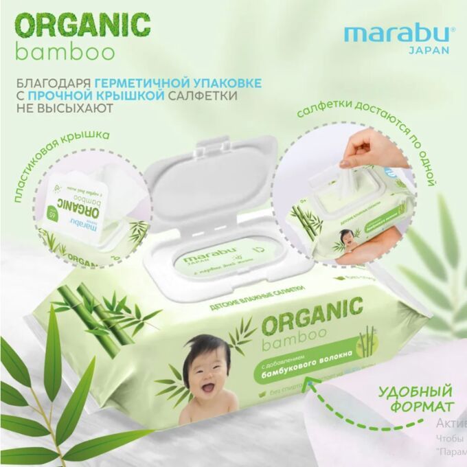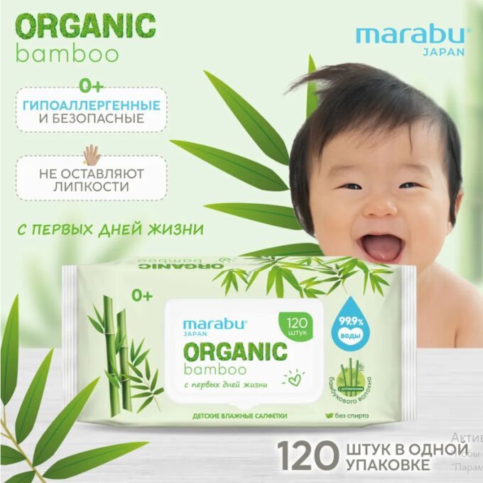 Читать все статьиСалфетки влажные детские MARABU, Бамбук, 120 штук