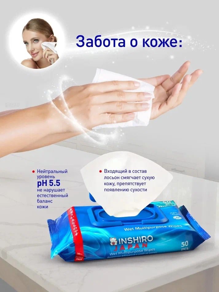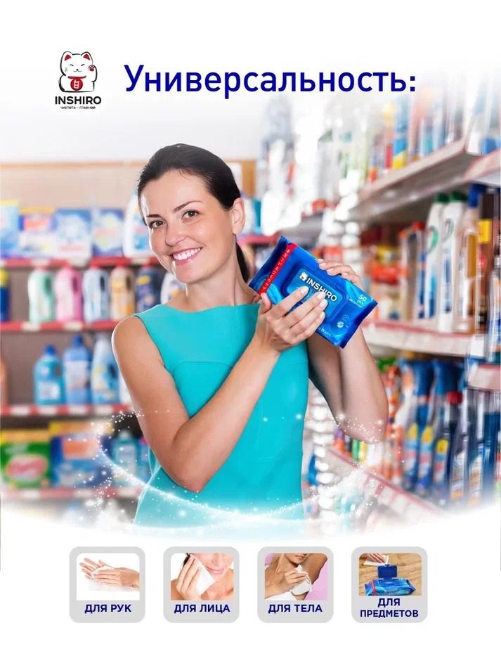 Читать все статьиСалфетки влажные универсальные INSHIRO 50 шт/упак.