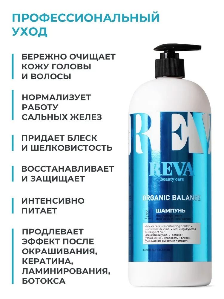 Читать все статьиШампунь Reva Beauty Care, ORGANIC BALANCE,бессульфатный,1000 мл