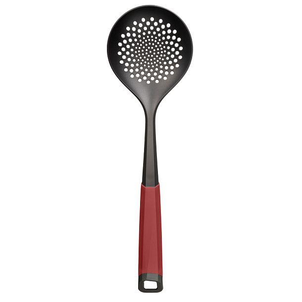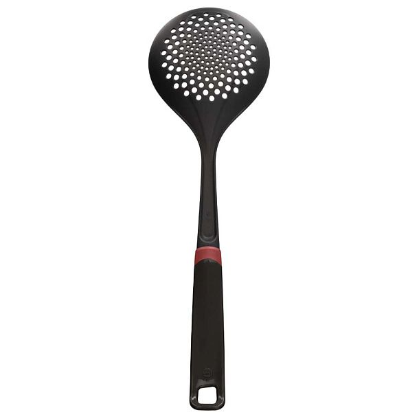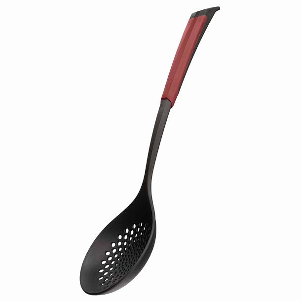 Шумовка изготавливается из стеклонаполненного полиамида: он выдерживает температуру до 200°C, не повреждает тефлоновую посуду и моется в посудомоечной машине.
