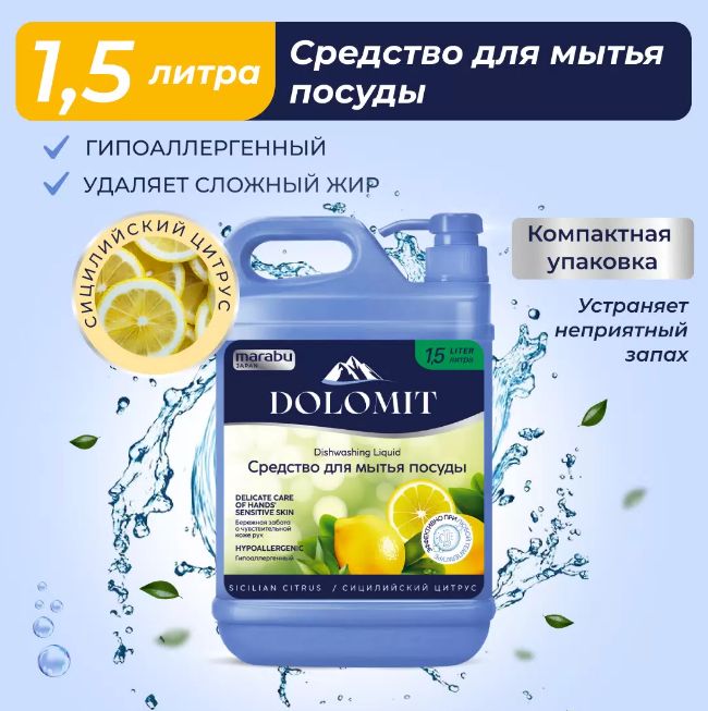Читать все статьиСредство для мытья посуды MARABU Dolomit, «Сицилийский цитрус», гипоаллергенный, 1,5л