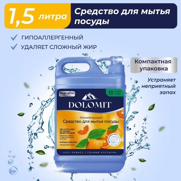 Читать все статьиСредство для мытья посуды MARABU Dolomit, «Сочный апельсин», гипоаллергенный, 1,5л