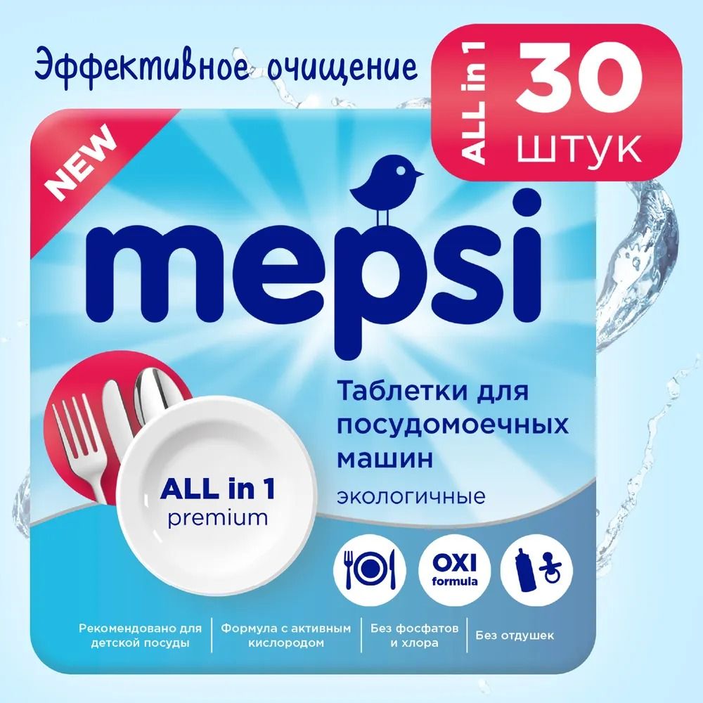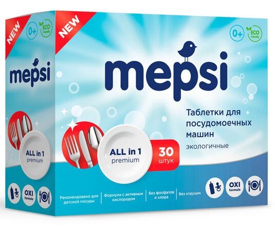 Читать все статьиТаблетки для посудомоечных машин MEPSI, бесфосфатные, 30 шт., 0+