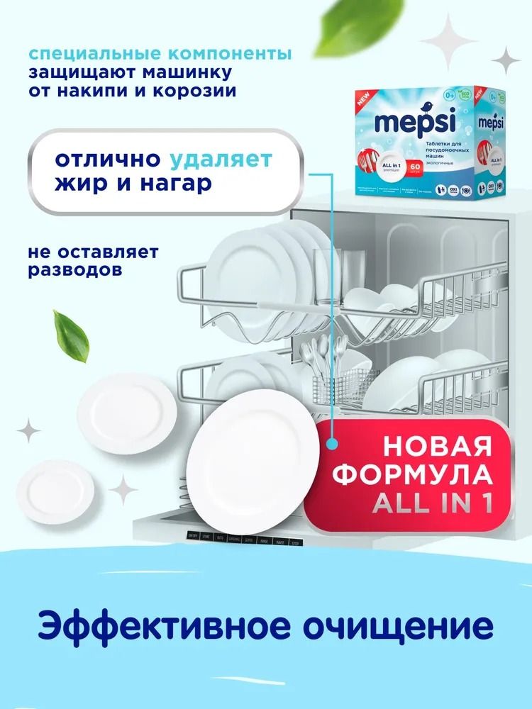 Компактные таблетки Mepsi - элемент бытовой химии, который поможет организовать бережный и безопасный уход за Вашей посудой и столовыми приборами.