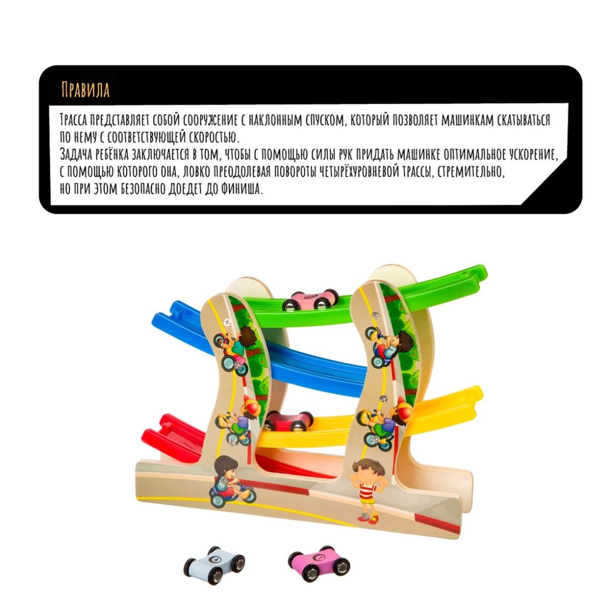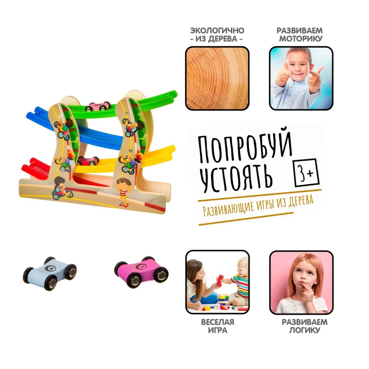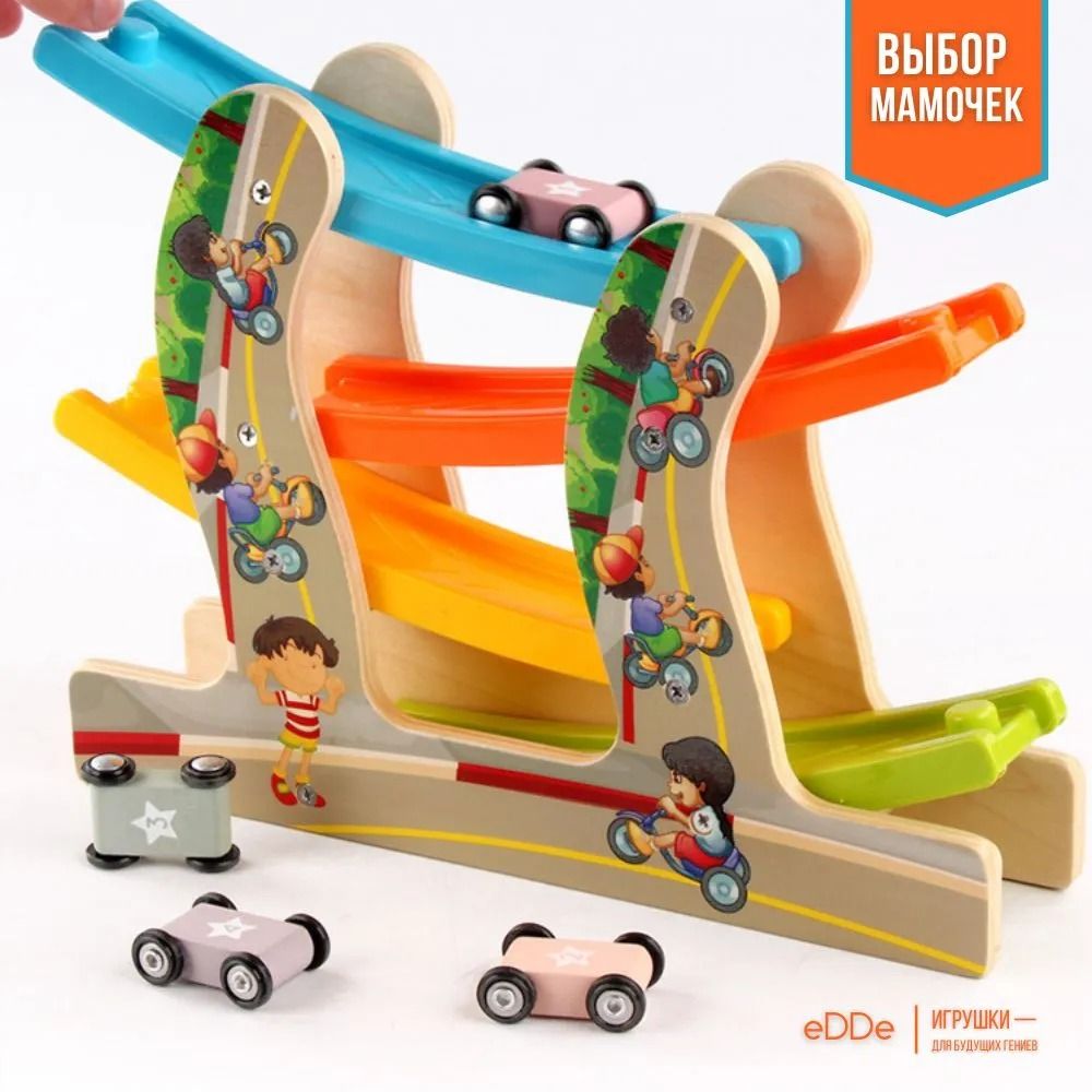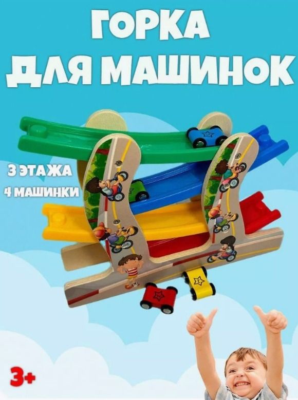 Читать все статьиТрек деревянный с машинками, 3+