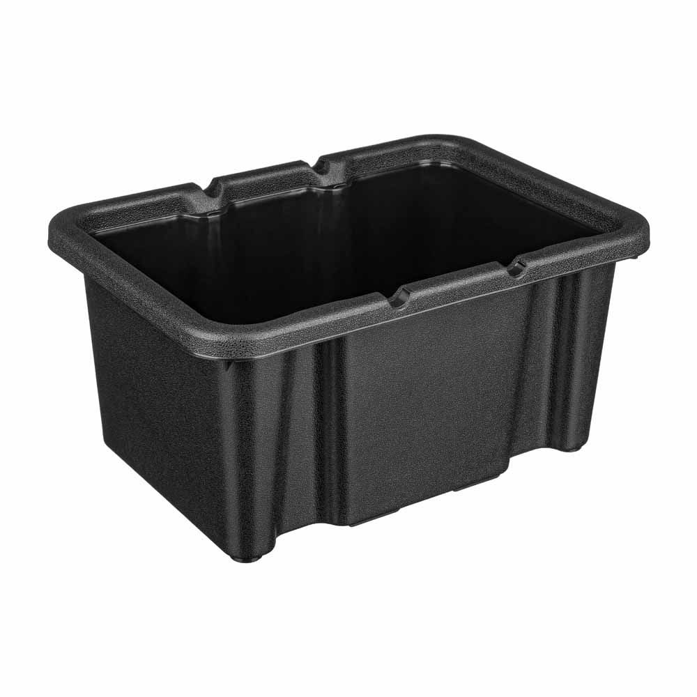 Небольшие ножки помогают фиксировать ящик в положении этажерки. Специальная рельефная фактура защищает поверхность ящиков от царапин. Широкий бортик формирует по бокам ящика ручки. Ящик подходит для помещений с повышенной влажностью и перепадами температур. Также его легко мыть. Бытпласт