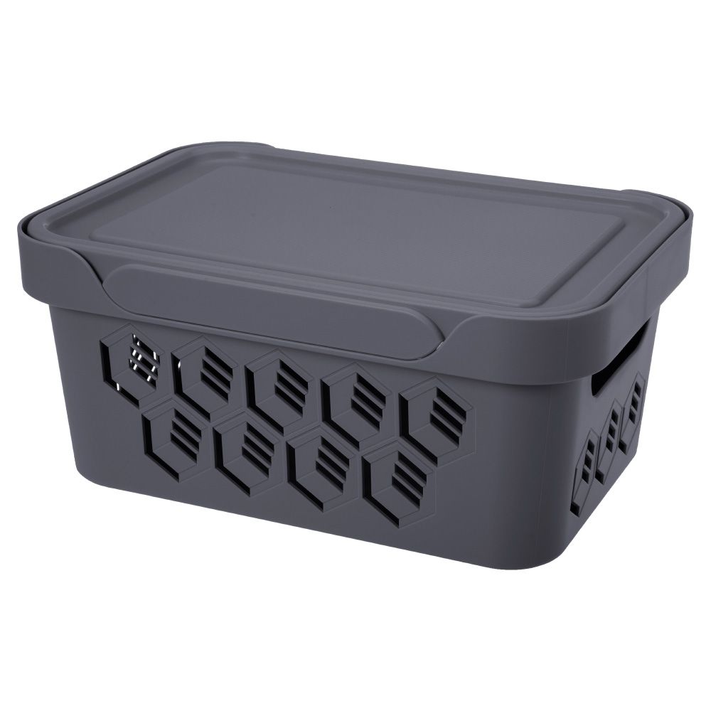 Матовый стильный ящик Deluxe с геометрическим узором и перфорацией на корпусе объёмом 4,6 литра идеально подойдёт для косметики, аксессуаров, игрушек и многого другого. Крышку ящика можно перевернуть, и она превратится в удобную полочку для хранения мелочей. Ящик Deluxe с удобными ручками выпускается в четырёх трендовых цветах. Бытпласт